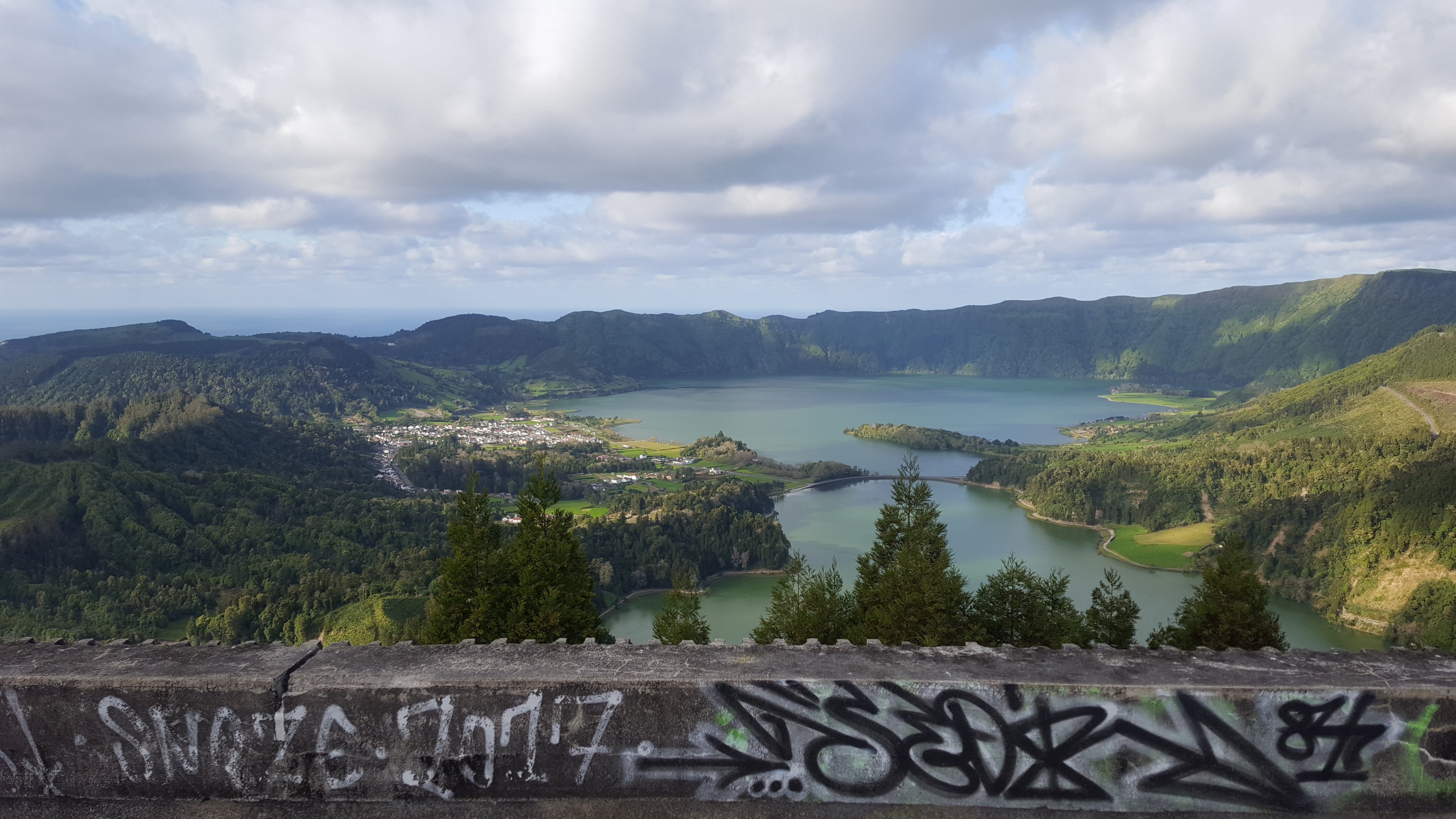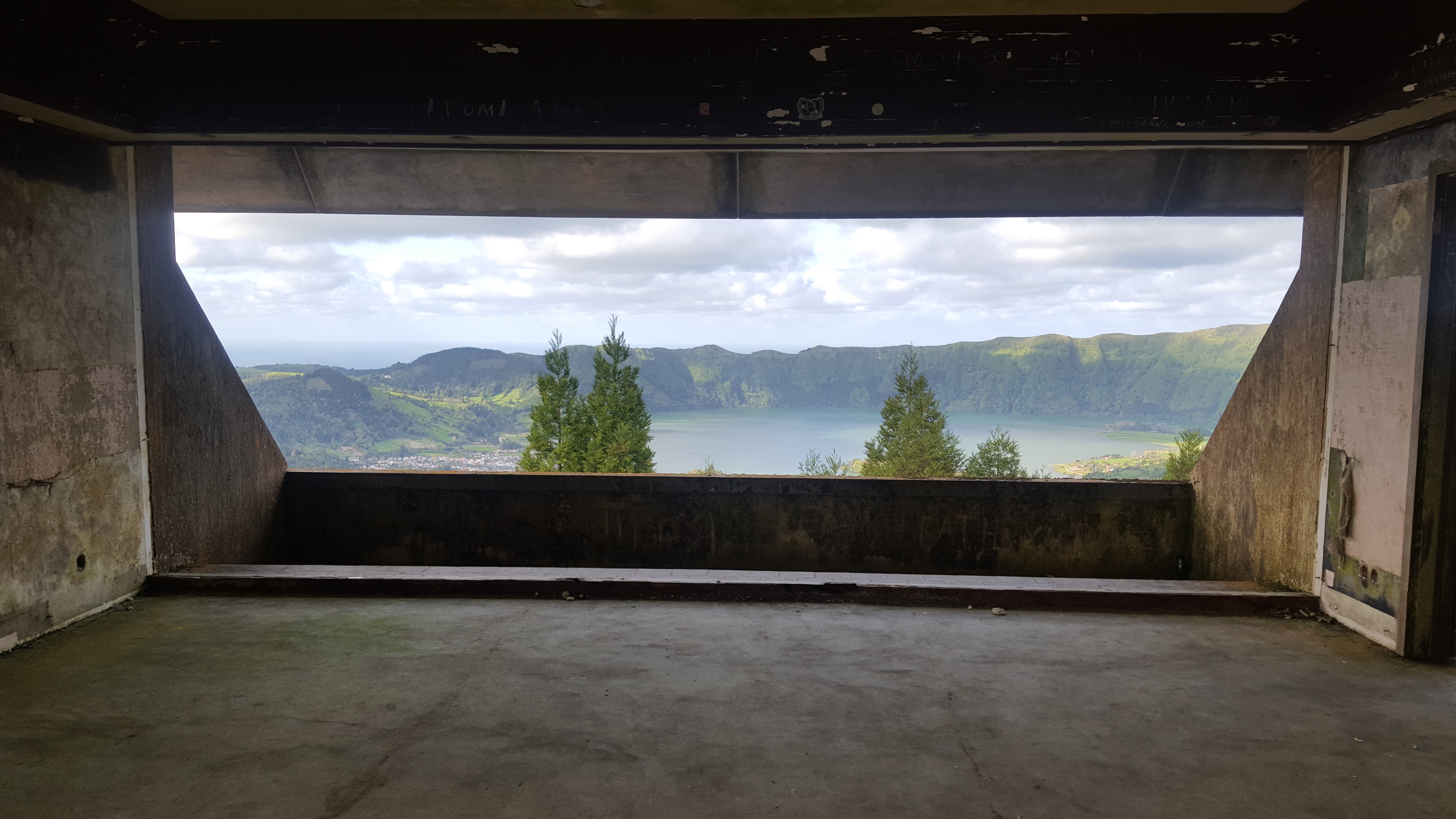 On our first day, we went straight for the money shot, Sete Cidades. There is an abandoned hotel, Monte Palace, that makes for a unique lookout point. Be careful though – elevator shafts are completely open and some areas can be dark. We were entirely alone when we were there, and it was pretty creepy (but I’m also a scaredy-cat). The basement is especially spooky and dark, as that is where the bar and nightclub were. Bring a flashlight and don’t miss the roof. There are walking paths nearby and you can drive down to the lake and rent kayaks. We spent some time exploring the town and enjoyed the view from next to the lake, too. You could plan to spend an entire day here, and this is a great place to choose to stay for your trip as there are picturesque rentals.